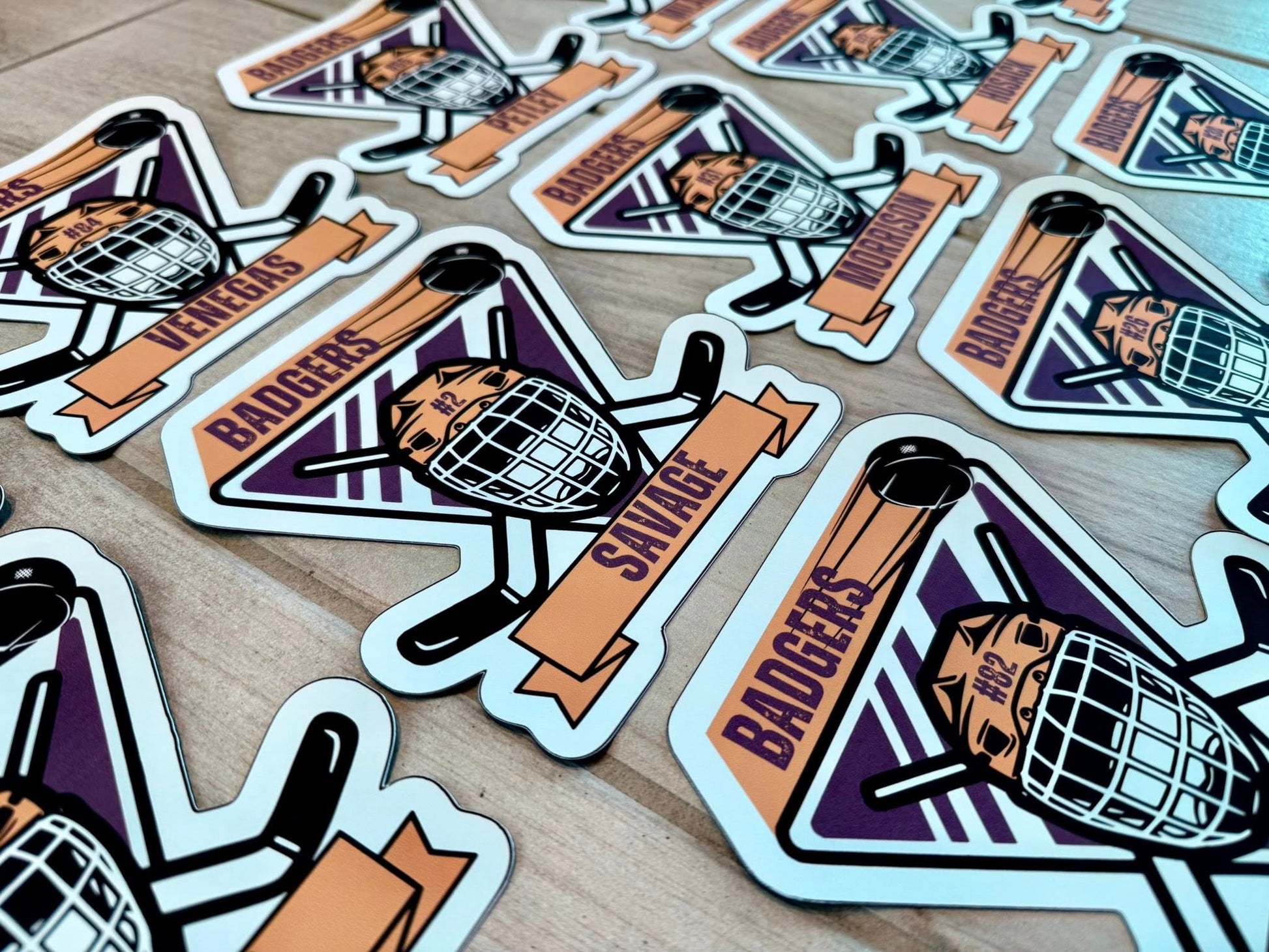 Our custom sports magnets feature bold, high-impact designs personalized with a name and number β perfect for lockers, fridges, toolboxes, or anywhere you want to show off team pride.