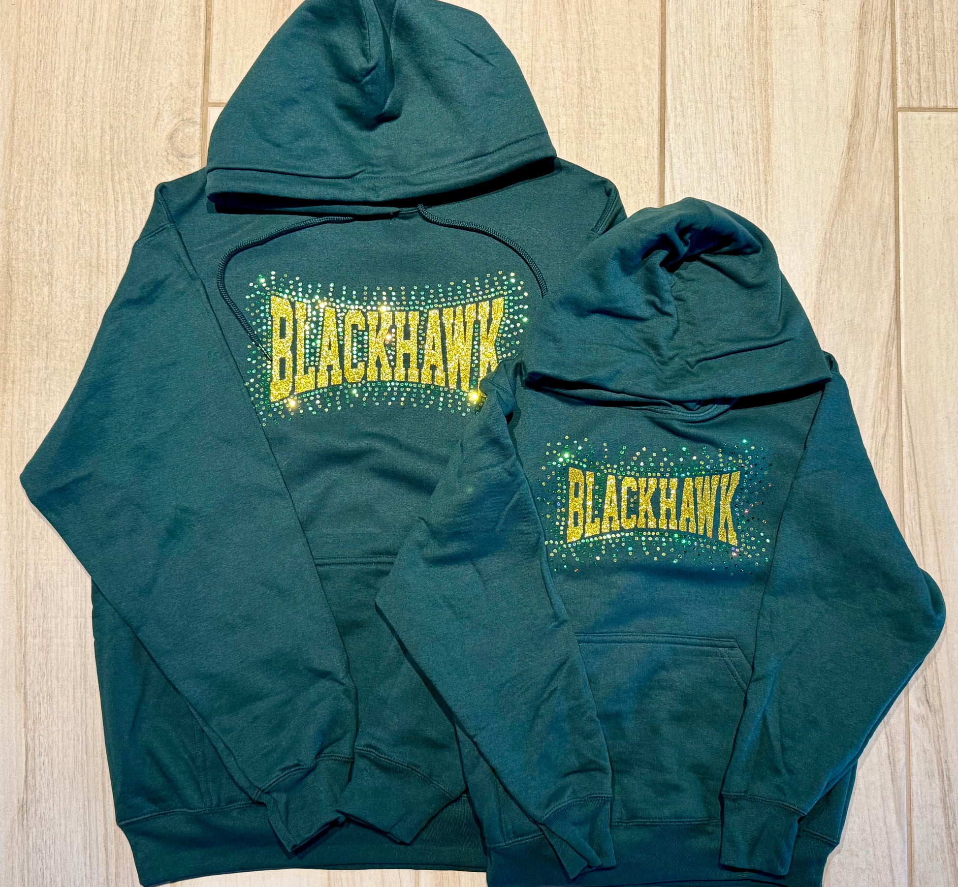 READY TO SHIP ā Blackhawk School Pride Glitter + Spangle Hoodie